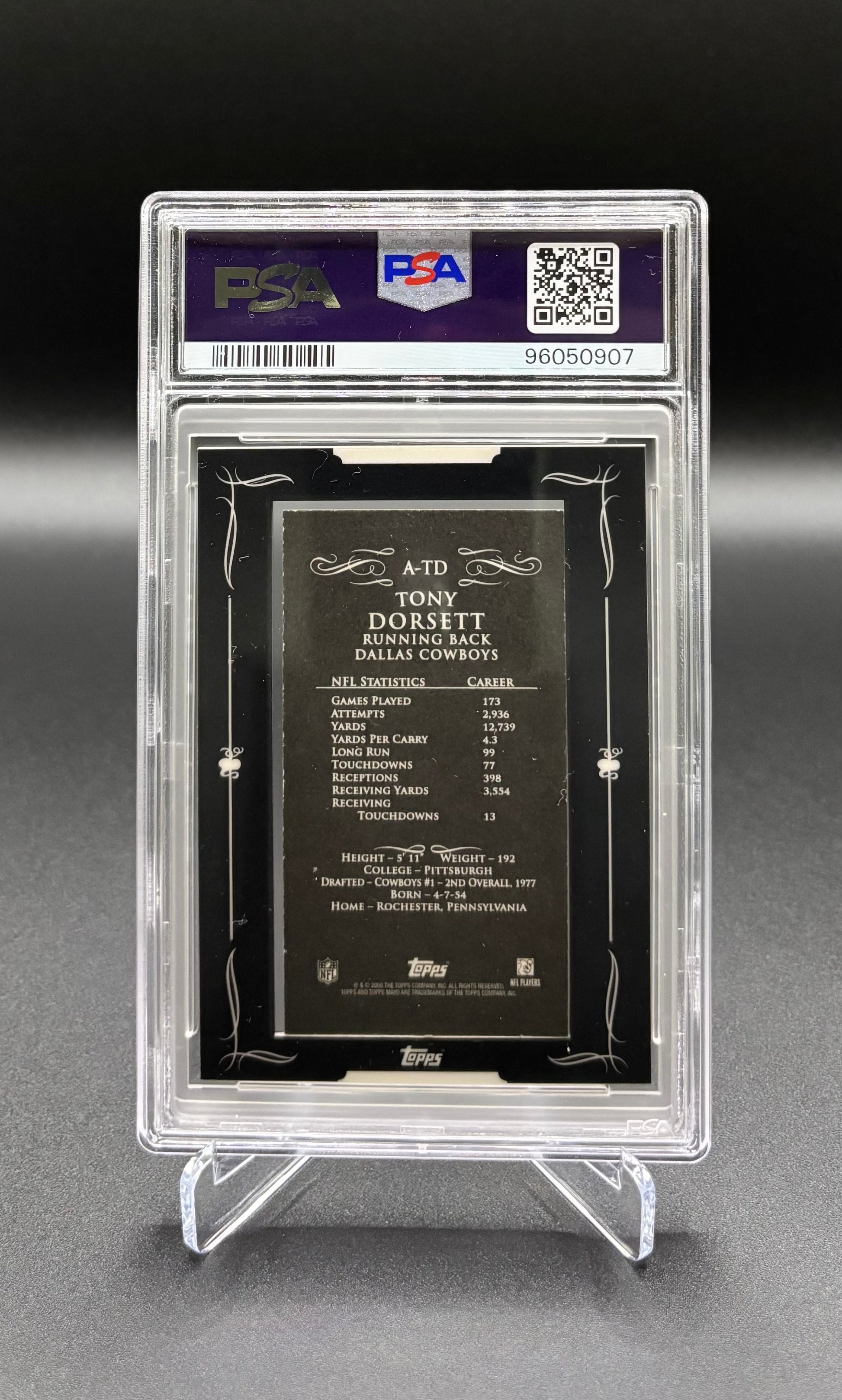 Tony Dorsett autographed card from the 2008 Topps Mayo set, graded PSA NM-MT 8 with autograph graded Auto 10. Hall of Famer, Dallas Cowboys.